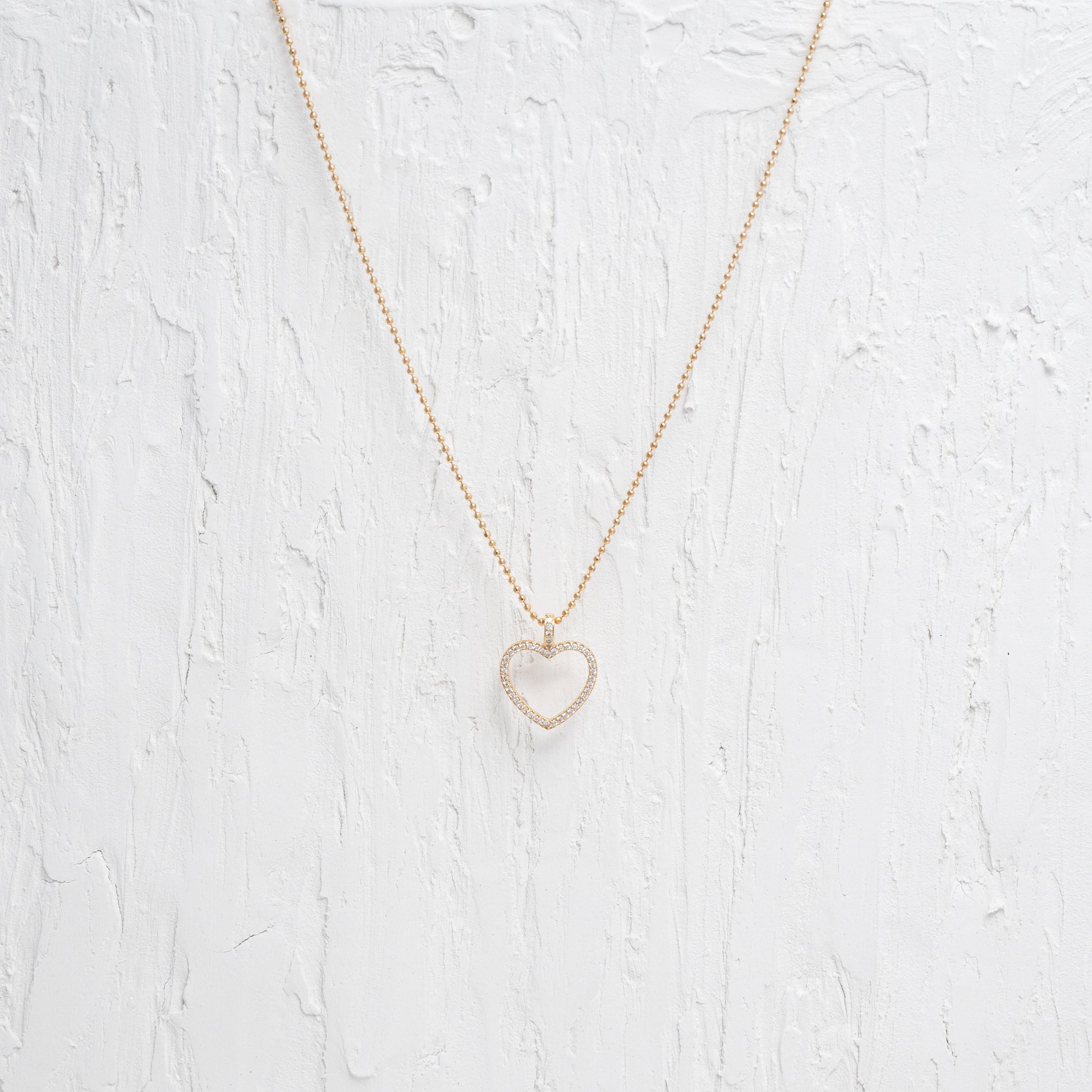 Unveil the charm of the Clear Stone Heart Charm Necklace, a dazzling expression of affection and elegance. This enchanting piece features a heart-shaped charm, adorned with a crystal-clear stone that glistens like a drop of morning dew. The charm is set against a backdrop of fine gold, offering a striking contrast and adding to its allure. This necklace is not just an accessory, but a keepsake of love and cherished moments. It's perfect for those who treasure heartfelt symbols and seek to add a touch of romantic glamour to their ensemble.