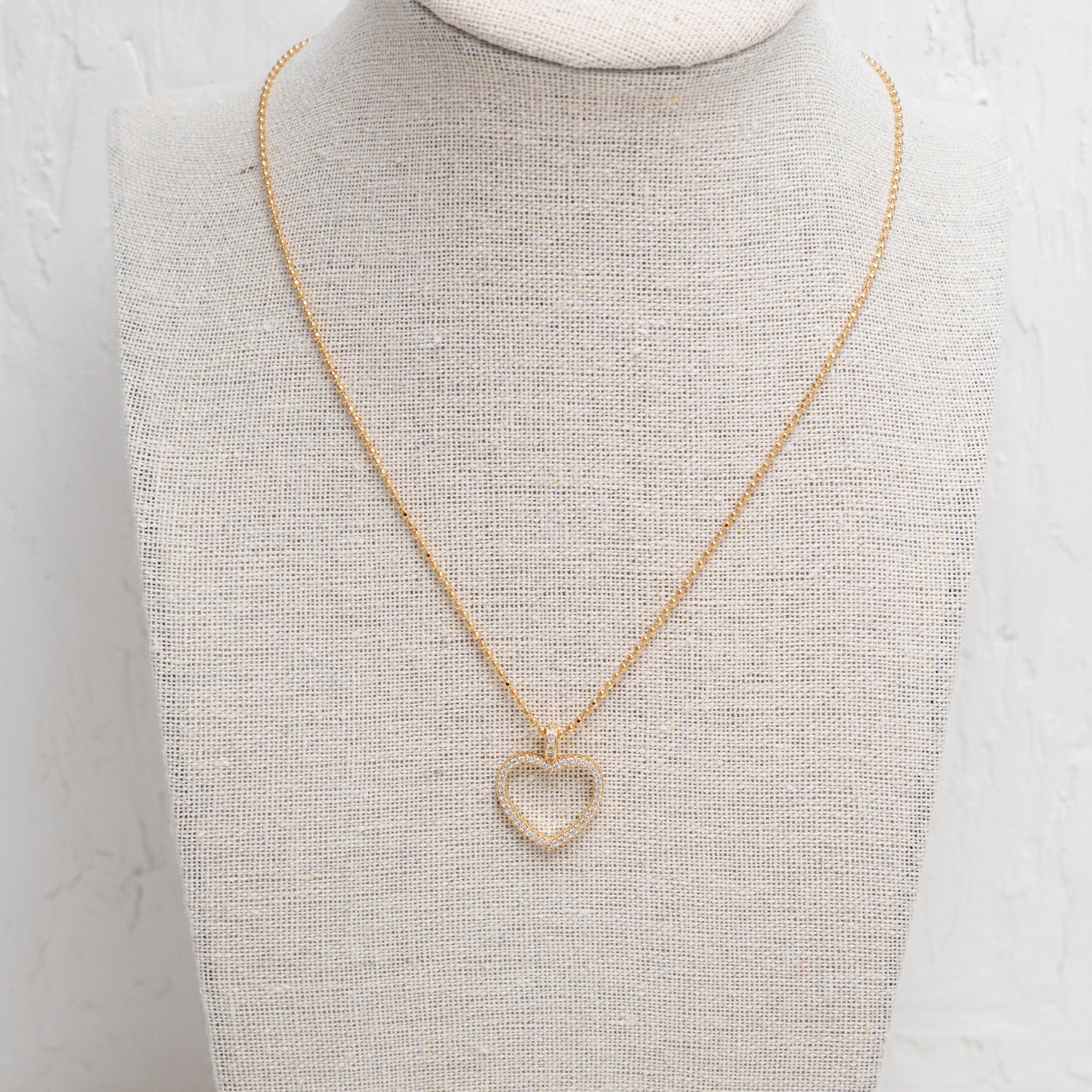 Clear Stone Heart Charm Necklace